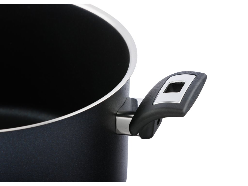 Hrnec s elegantním černým nepřilnavým povrchem PROFESSIONAL-R vyztuženým keramickými částicemi prémiového švýcarského výrobce ILAG vydrží zátěž častého a intenzivního používání a vyznačuje se dlouhodobou odolností. Tělo hrnce je robustní a přidaná keramická výztuha povrchu zvyšuje vysokou povrchovou rezistenci.