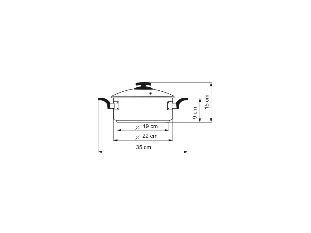 Tento hrnec včetně poklice z pevného temperovaného skla můžete použít v troubě do 150°C. Skleněná poklice s parním ventilem pro odvod páry je opatřena konstrukčně důmyslnými drážkami, jimiž odtéká voda po mytí. Ergonomické párové designové plastové úchyty mají přerušené tepelné mosty a během používání nepálí.