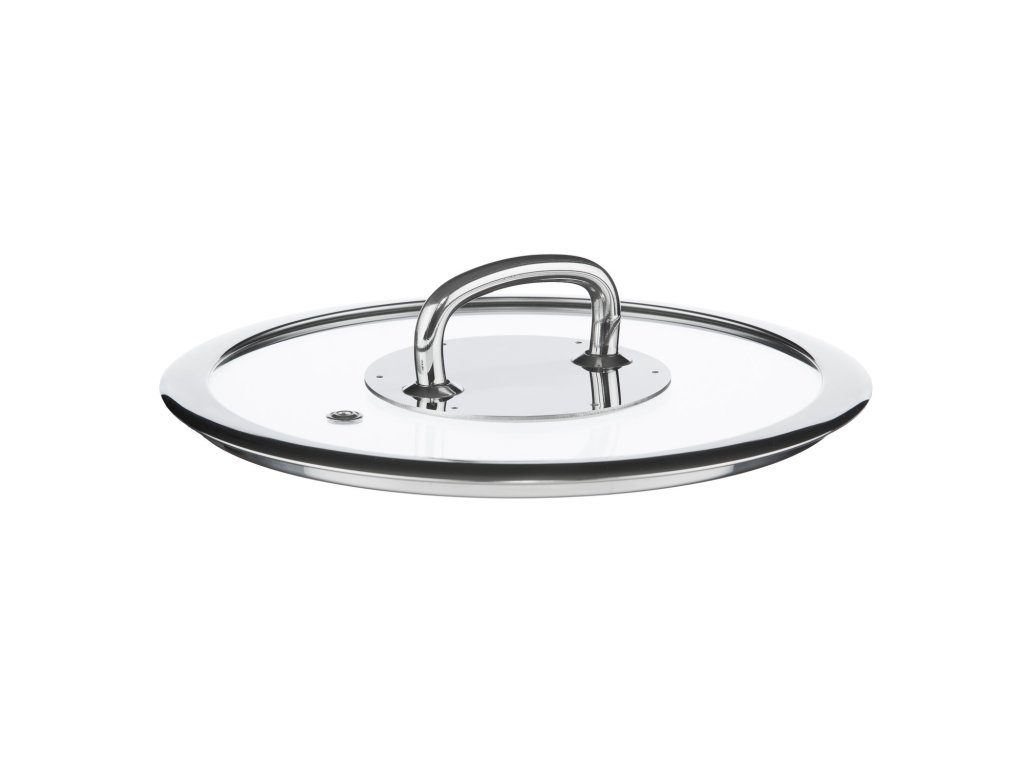 Přesná skleněná poklice IDEAL Ø 26 cm s leštěným povrchem a parním ventilem pro snadný odvod páry během úpravy pokrmů. Designový úchyt padne krásně...