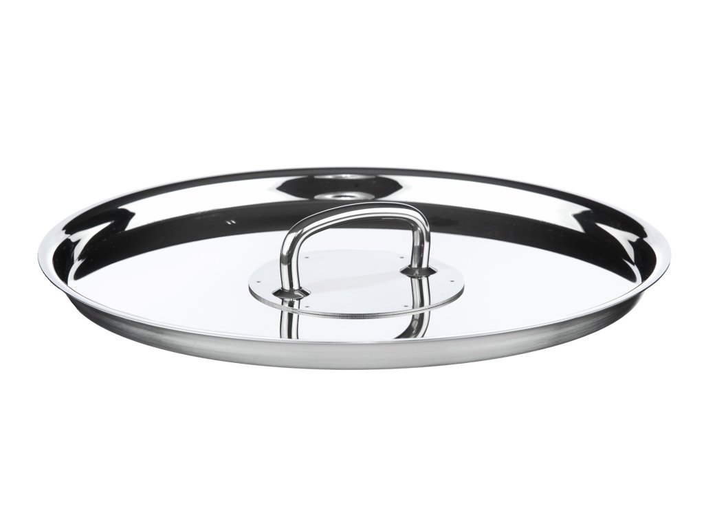 Přesná nerezová poklice PRECISE Ø 22 cm s leštěným povrchem. Designový úchyt padne krásně do ruky.
