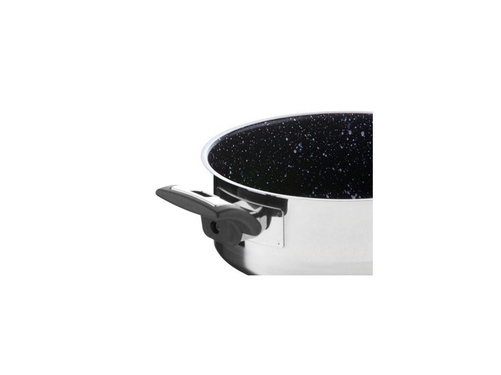 Rendlík s nepřilnavým vnitřním černošedým povrchem vyztuženým keramickými částicemi prémiového švýcarského výrobce ILAG vydrží zátěž častého a intenzivního používání a vyznačuje se dlouhodobou odolností. Nádobí má robustní tělo a přidaná keramická výztuha povrchu zvyšuje vysokou povrchovou rezistenci.