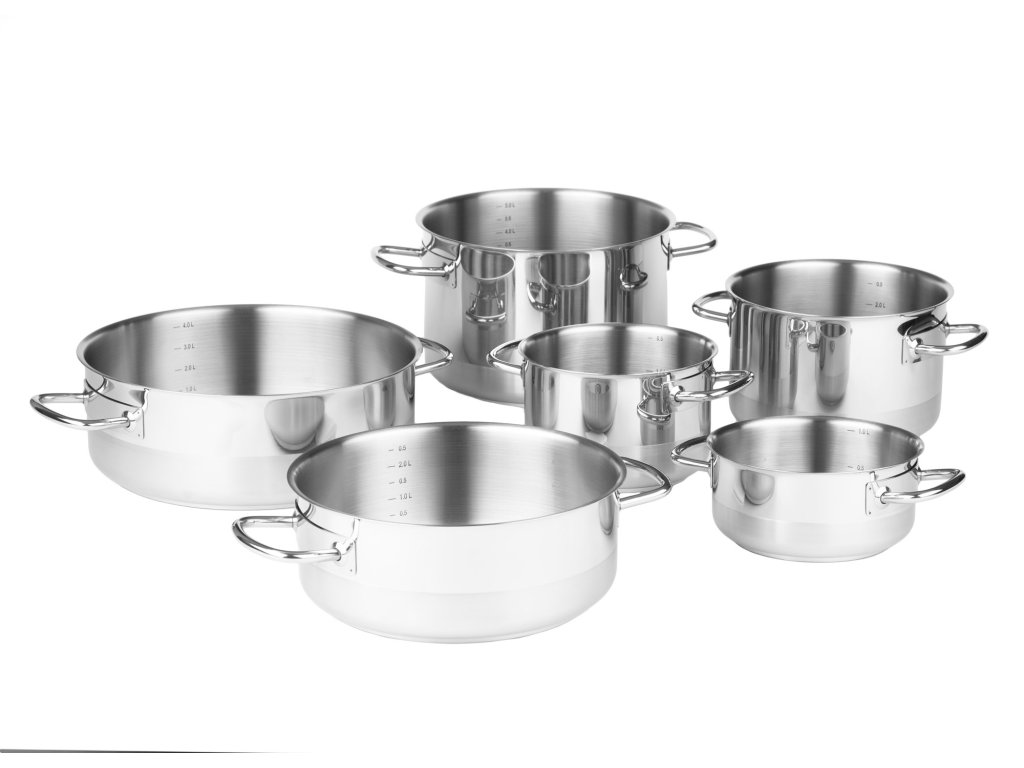 Celokovové úchyty mají přerušené tepelné mosty a při použití na sporáku nepálí. Všechny nádoby mají široký odlévací okraj pro snadnou manipulaci s obsahem bez ukapávání a zašpinění nádob. Pro komfortní údržbu a pohodlné vaření je jejich vnitřní povrch 3x jemně broušený. Vnější povrch je vyleštěný do zrcadlového lesku.